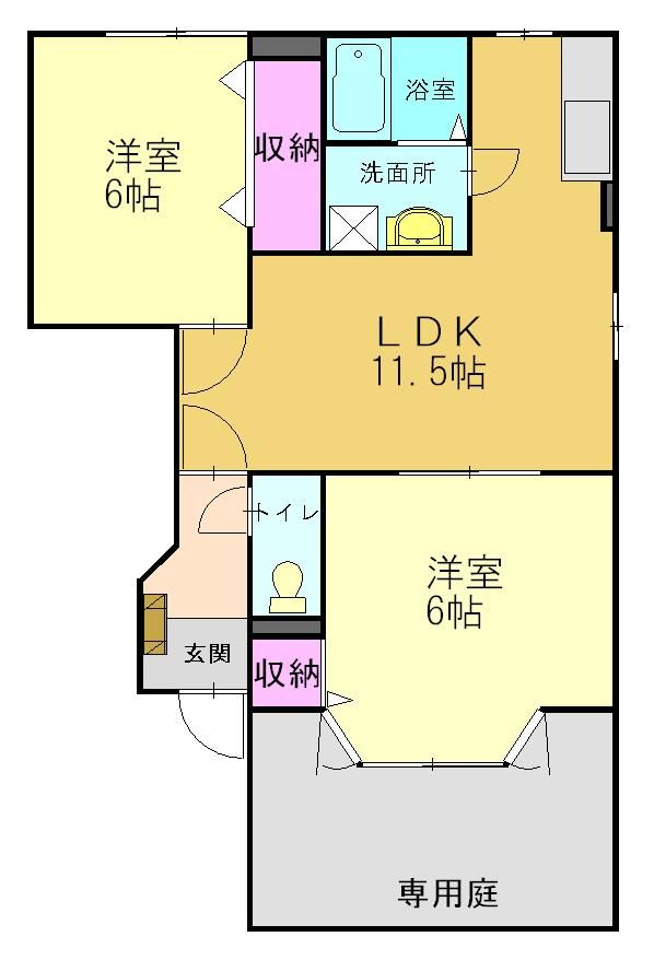 2LDK( 洋室6畳/洋室6畳/LDK11.5畳 ) |