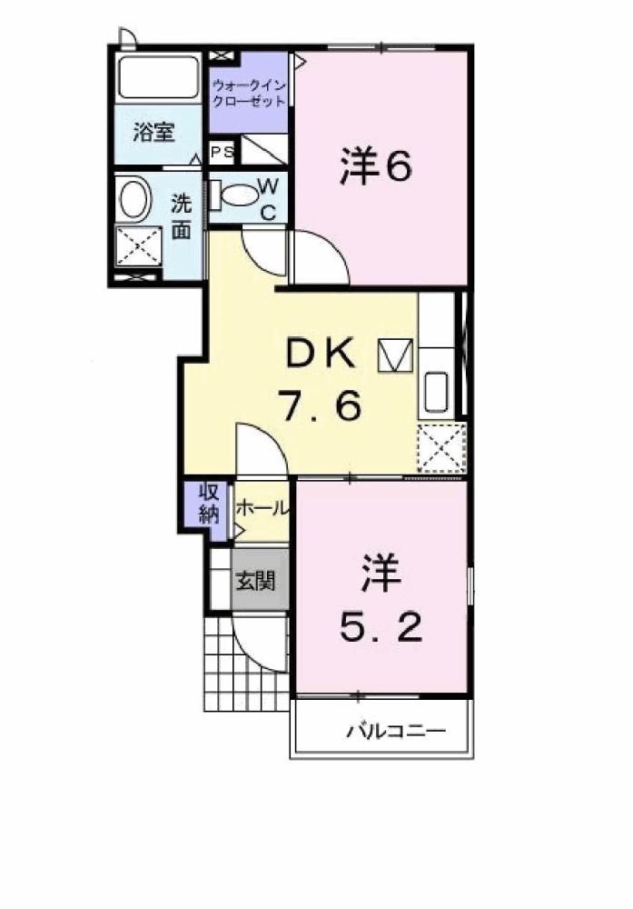 2DK( DK7.6畳/洋室5.2畳/洋室6畳 ) |