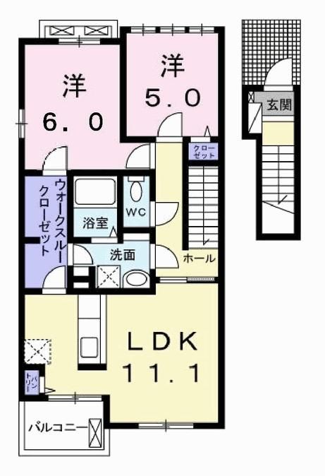 2LDK( LDK11.1畳/洋室5畳/洋室6畳 ) |